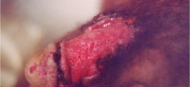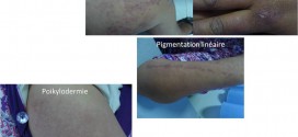 Cette femme consulte pour des plaques d’erythème keratosique et atrophique du visage recouvertes de squames-croutes adhérentes.