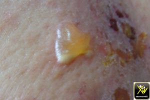 Cette femme consulte pour un nodule de la face qui augmente lentement de volume, qui …